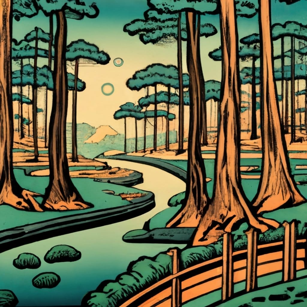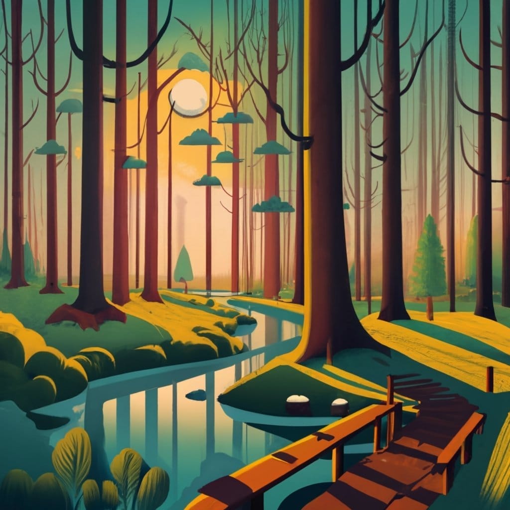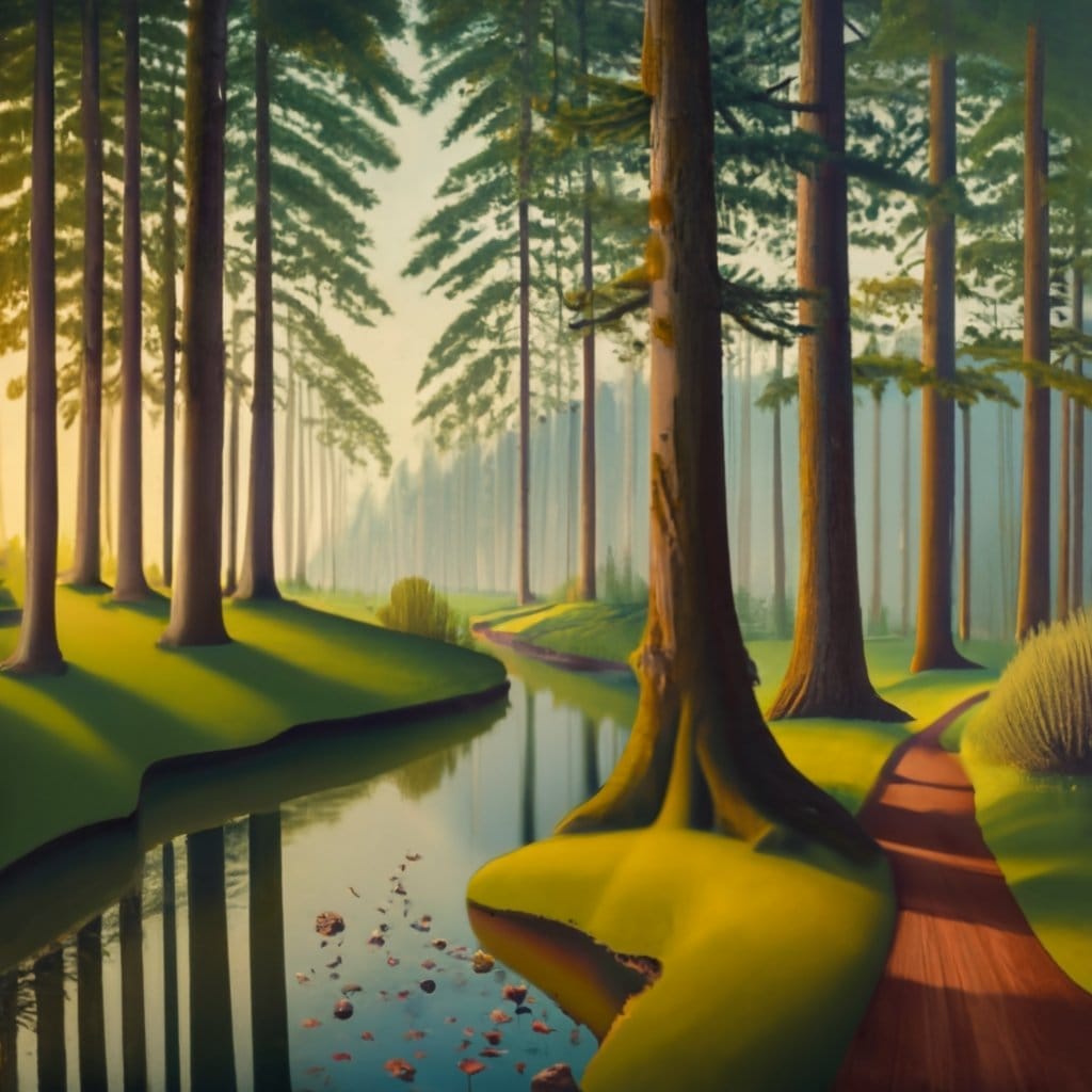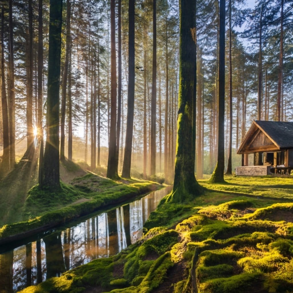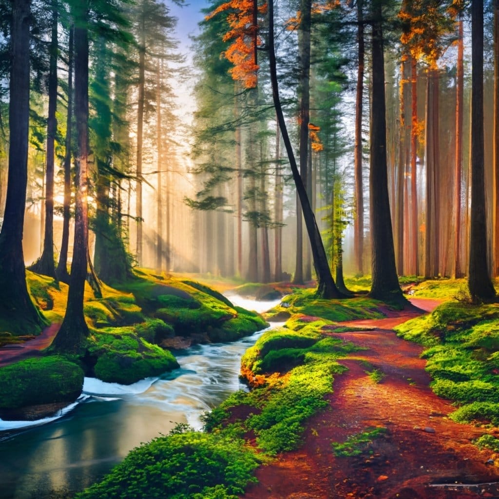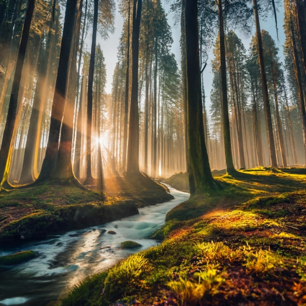 Oder nutze das Bild aus dem Beispiel oben: Ein mystischer Wald mit einem klaren Bach